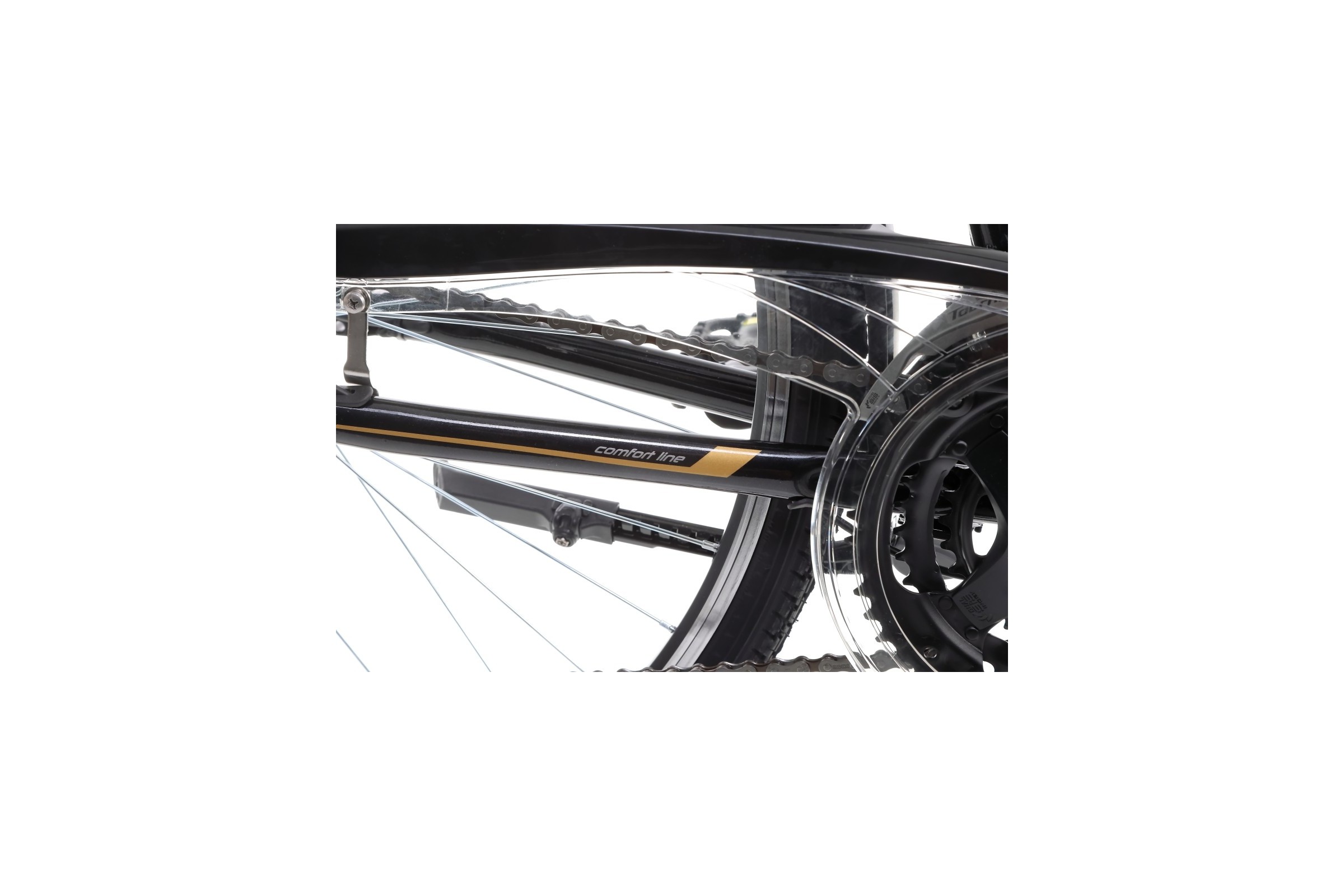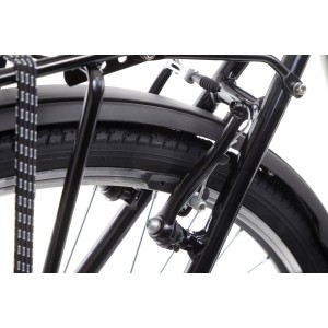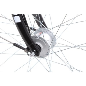 Prądnica w przedniej piaście zapewnia nieustanne zasilanie lampy z przodu i z tyłu. Regulowany mostek kierownicy i amortyzowana sztyca siodła poprawiają komfort użytkowania roweru.