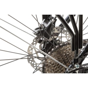 W kwestii bezpieczeństwa nie ma miejsca na kompromisy, dlatego producent postawił na hydrauliczne hamulce tarczowe Shimano BR-MT200. To sprawdzone i bezawaryjne rozwiązanie, które oferuje potężną siłę hamowania w każdych warunkach. Niezależnie od tego, czy zjeżdżasz ze stromej górki z ciężkimi sakwami, czy na trasie zaskoczy Cię ulewa, zatrzymasz się szybko i bezpiecznie.