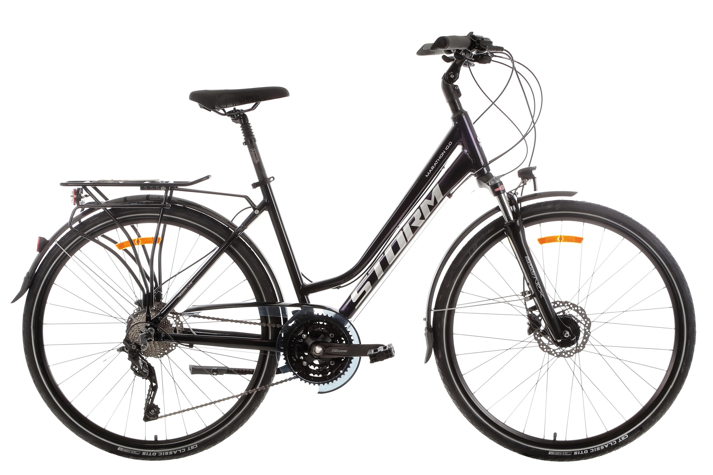 Solidną podstawę do jazdy w zróżnicowanym terenie stanowią duże, 28-calowe koła. Zbudowano je na wzmacnianych, dwukomorowych obręczach aluminiowych STORM oraz niezawodnej tylnej piaście Shimano FH-M6000. Za kontakt z podłożem odpowiadają znakomite opony CST Otis (700x40C). Ich uniwersalny bieżnik świetnie radzi sobie na asfalcie i szutrze, a wbudowany odblaskowy pasek Reflex dba o Twoją doskonałą widoczność po zmierzchu.