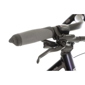 Za bezstresowe pokonywanie krawężników i leśnych wybojów odpowiada przedni amortyzator Suntour NEX-DSC RLO o skoku 63 mm. Dzięki niemu Twoje dłonie i nadgarstki są chronione przed uciążliwymi wstrząsami. Widelec wyposażono również w praktyczną blokadę skoku (RLO) – jednym ruchem usztywnisz zawieszenie, aby nie tracić cennej energii podczas szybkiej jazdy po gładkim asfalcie.