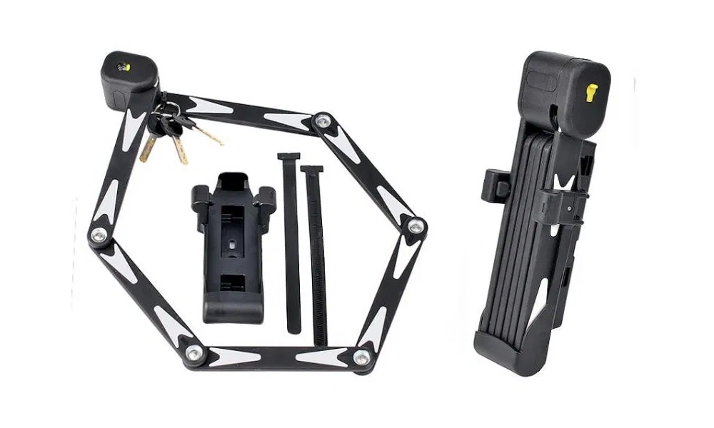 - Typ i konstrukcja: Zapięcie składane, zbudowane z 6 segmentów z hartowanej stali. Stanowi próbę połączenia solidności U-locka z kompaktowością.