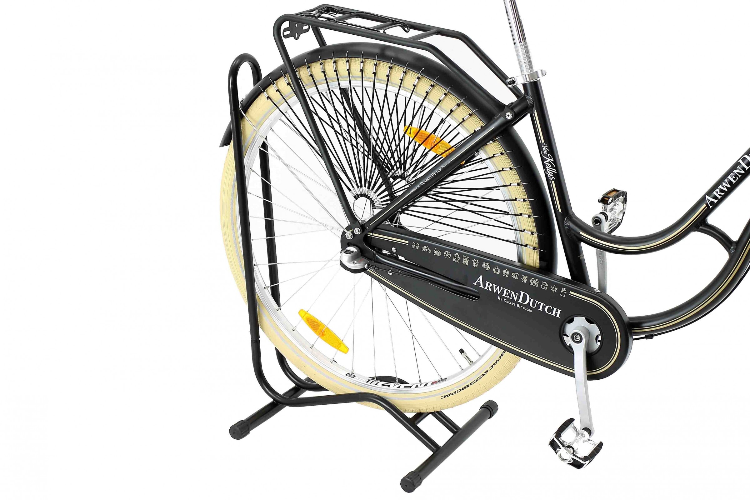 - Sposób parkowania roweru nie przeszkadza w swobodnym obrocie pedałami dzięki czemu można z niego korzystać podczas czyszczenia oraz smarowania napędu, a także regulacji.