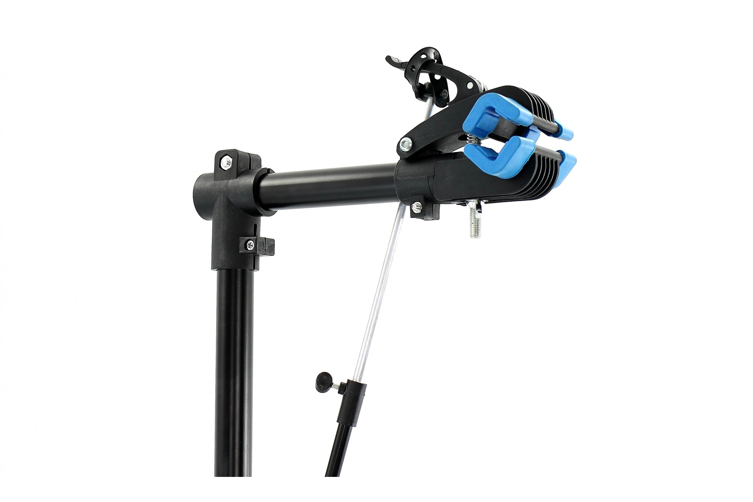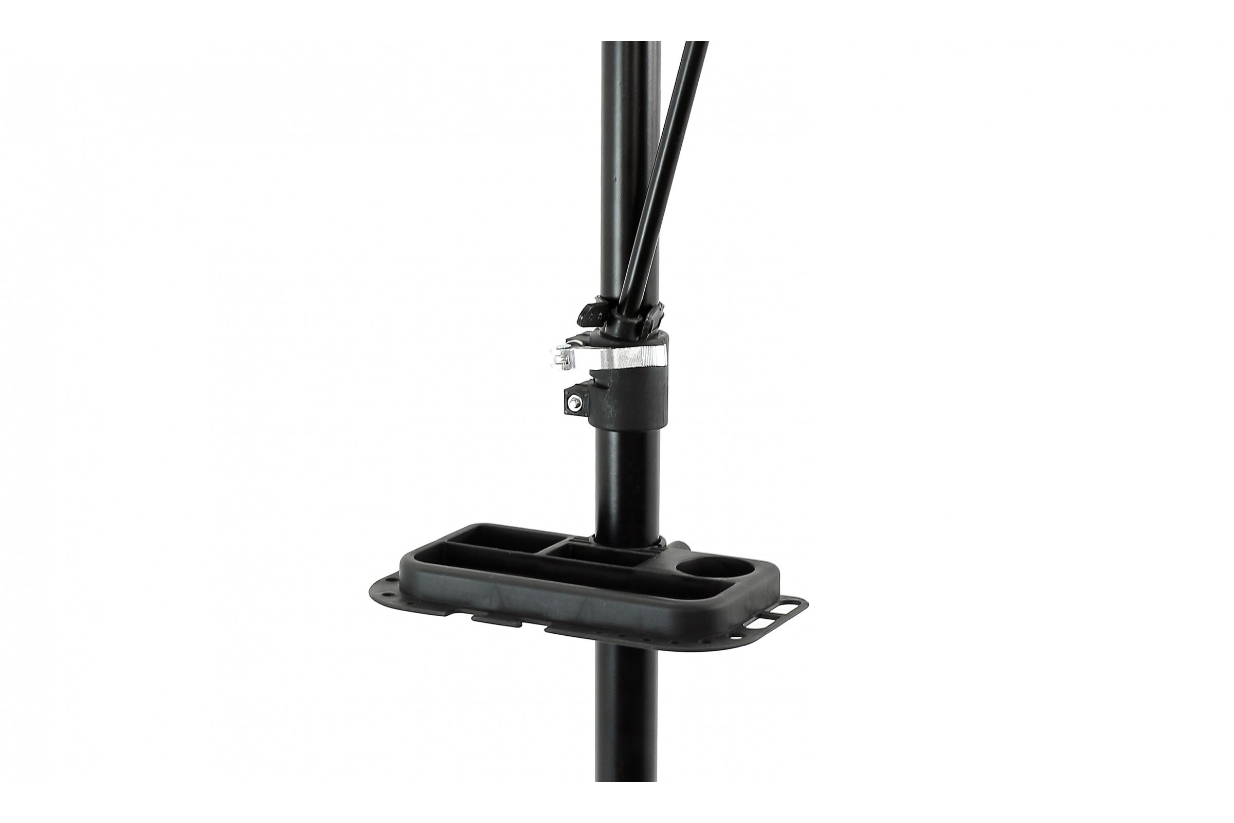 - Stojak został wyposażony w bardzo praktyczną rozpórkę montowaną pomiędzy kierownicą a ramą. Dzięki niej kierownica oraz przednie koło są nieruchome.