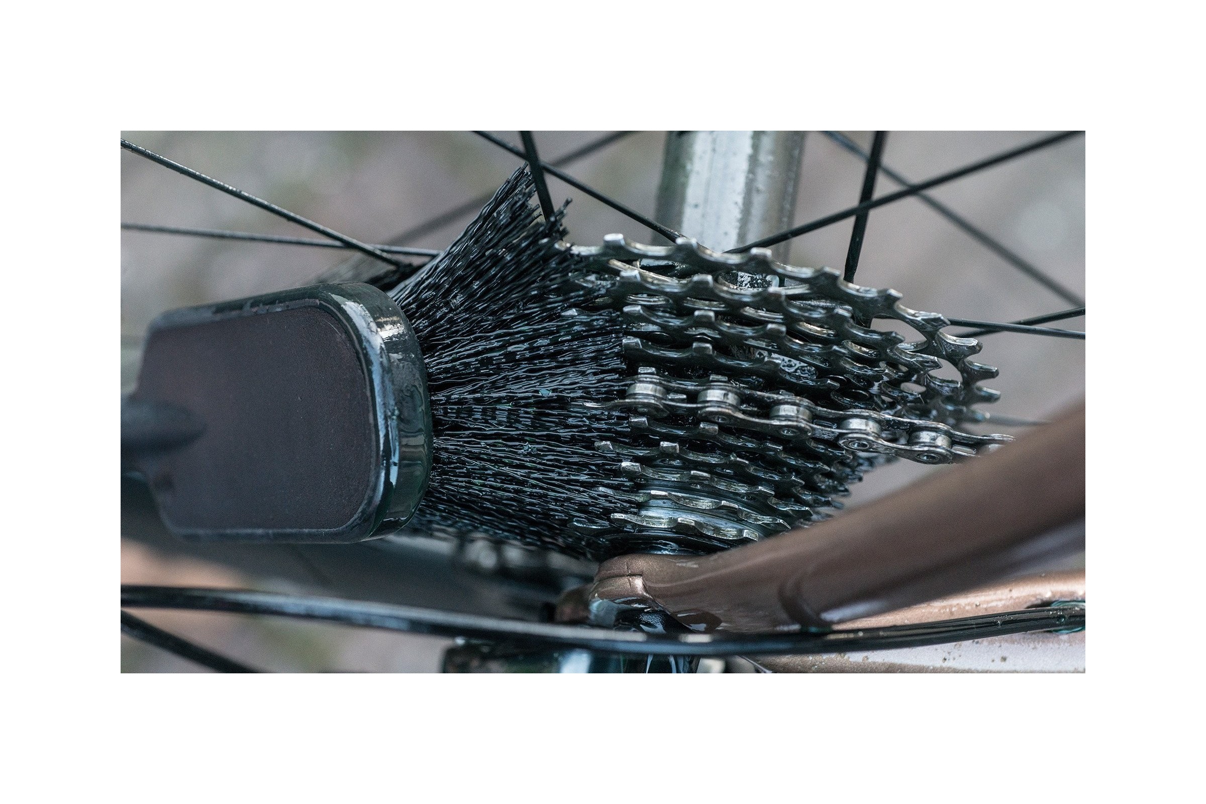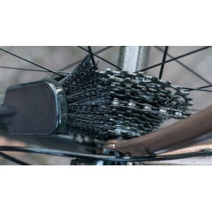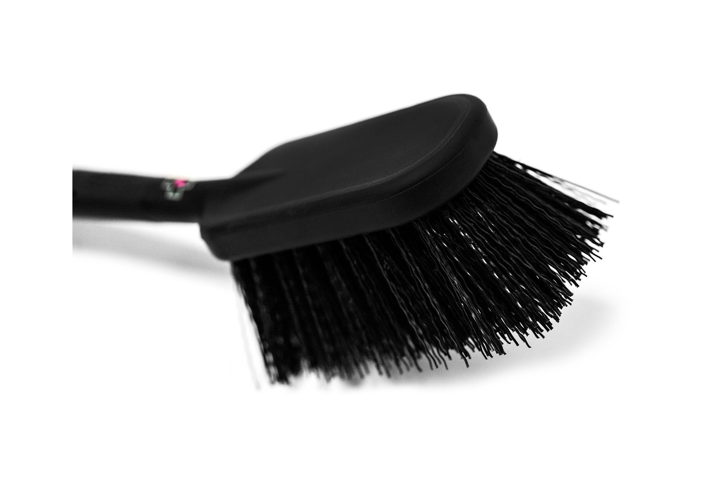 Sztywniejsze niż przeciętne nylonowe włosie sprawia, że każdy brud, który Twój rower zebrał z drogi lub szlaku, jest szybko usuwany. Wystarczy rozpylić różowy Nano Tech Bike Cleaner na zabrudzone obszary, przetrzeć szczotką do opon i kaset i spłukać.
