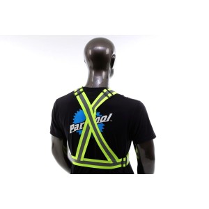 - Bardzo dobra widoczność zapewniona dzięki zastosowaniu szerokich pasków odblaskowych na całej długości szelek.