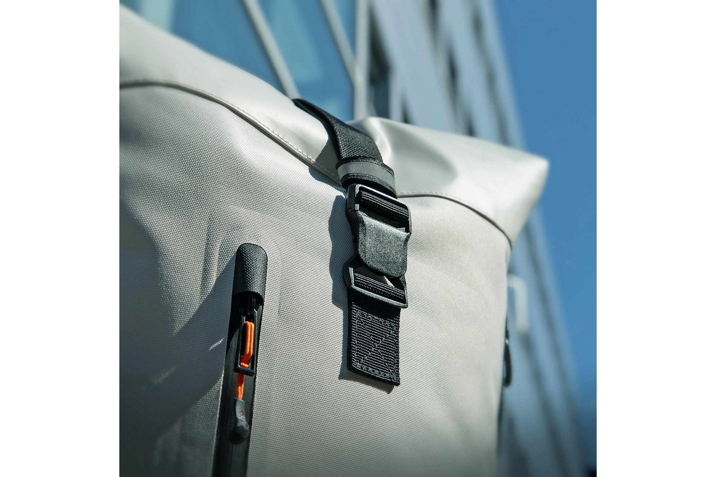 - Dodatki: kieszeń na laptop, roll-top, pasek na ramię, odblaskowe elementy