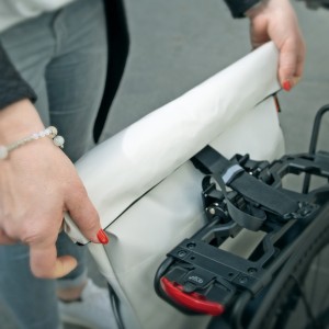INFINITY URBAN SIDE BAG to wytrzymała, wodoodporna torba boczna na bagażnik rowerowy o pojemności 20 L, idealna na zakupy, sprzęt czy laptopa (do 15”). Montowana za pomocą regulowanych haczyków i dolnego obrotowego uchwytu, pasuje do większości bagażników i zapobiega kołysaniu się podczas jazdy. Rolowane zamknięcie z zamkiem błyskawicznym i magnetycznym zatrzaskiem zapewnia elastyczne dopasowanie objętości. Torba posiada wzmocniony spód i tył, wyściełaną kieszeń na laptop, łatwo dostępną komorę zewnętrzną oraz odblaskowe paski dla zwiększenia bezpieczeństwa. Możliwość szybkiego zdjęcia i użycia jako torby na ramię dzięki dołączonemu paskowi.