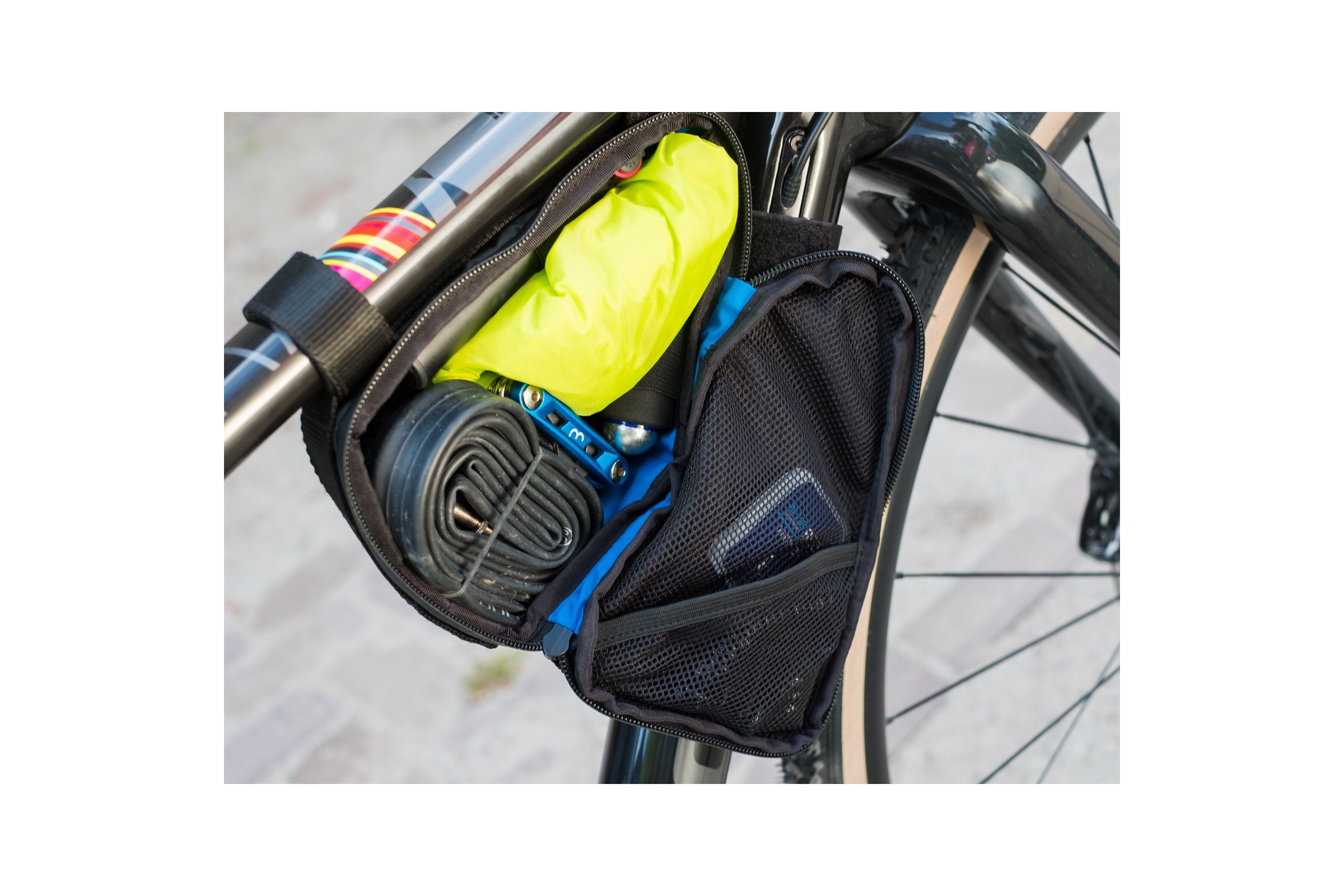 - Lekka torba na ramę z nylonu, którą można umieścić na ramie w kilku pozycjach