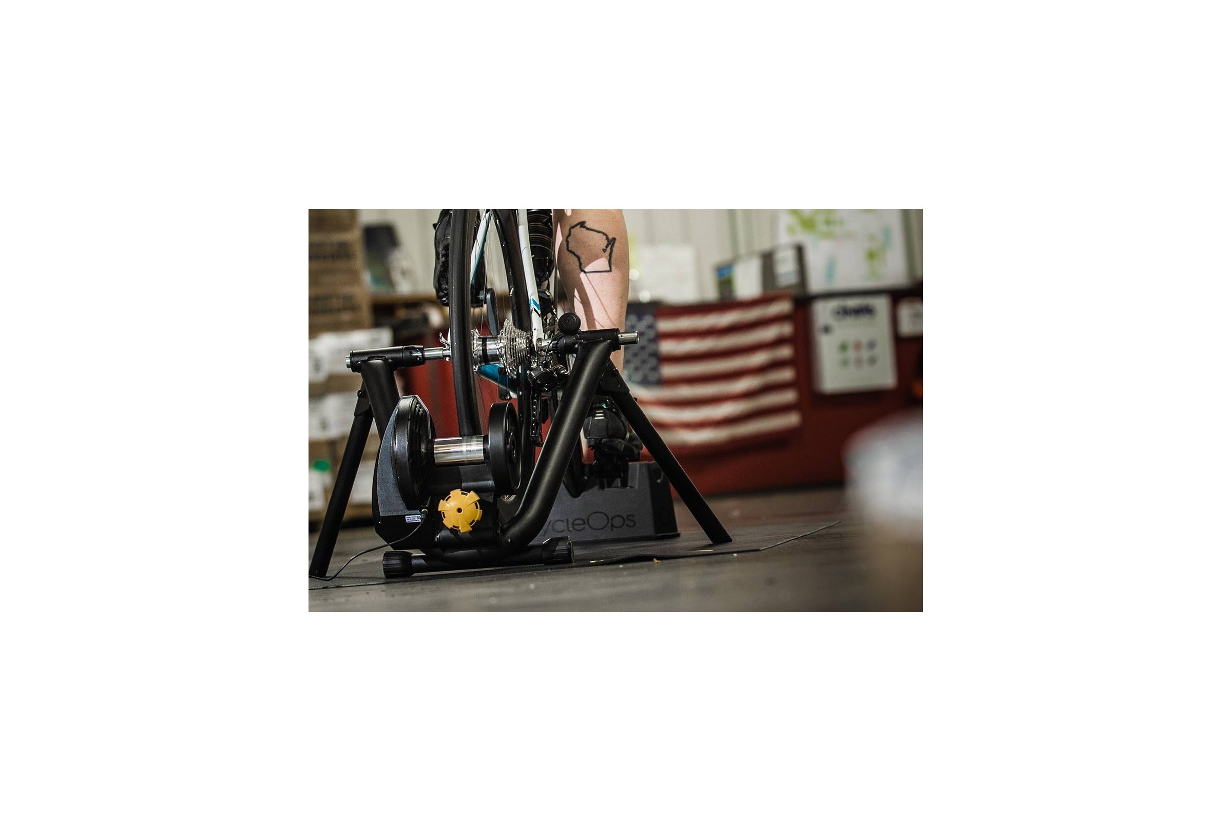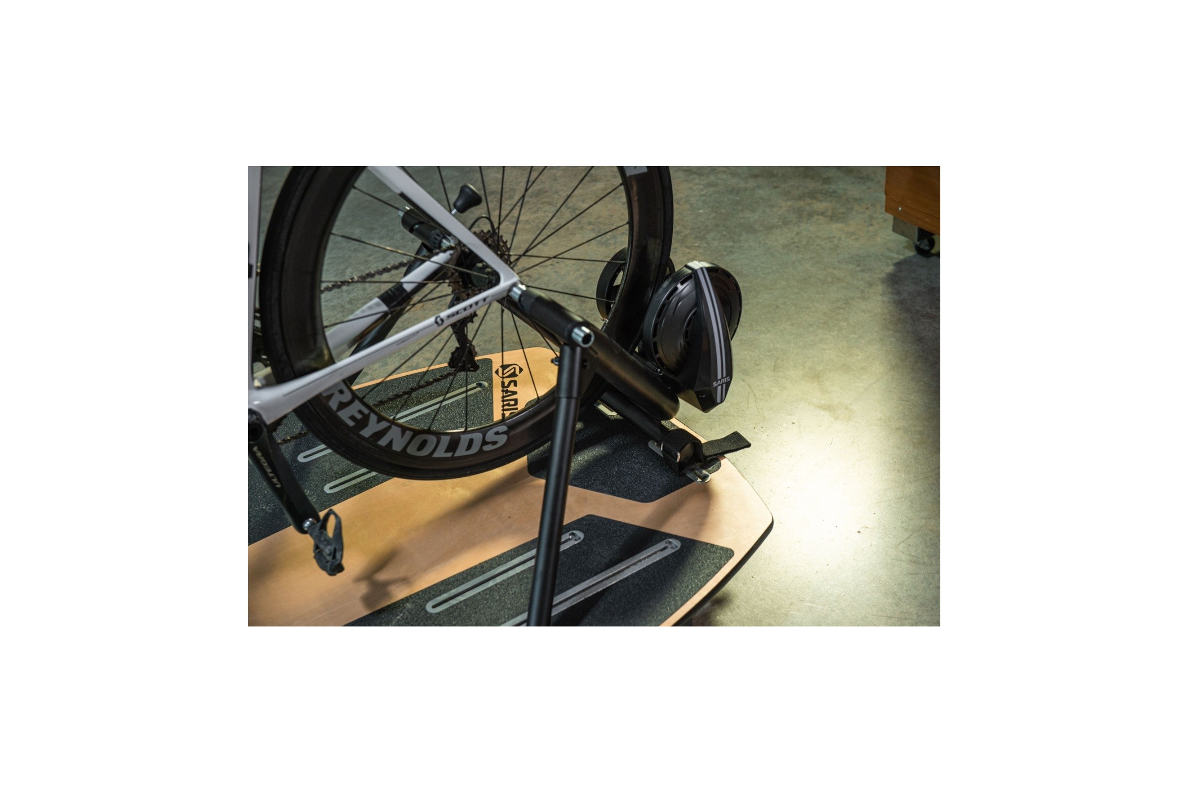 Saris M2 Smart Trainer to trenażer z funkcjami interaktywnymi, z mocowaniem na tylne koło.