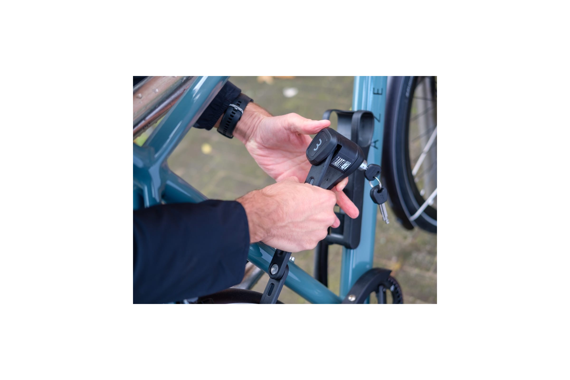 - System uchwytów pozwala na montaż zamka niemal w dowolnym miejscu na ramie roweru.